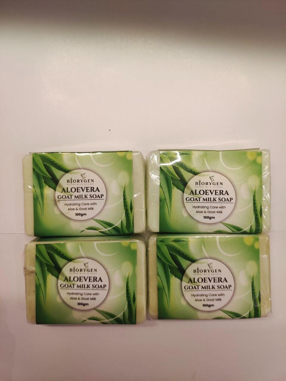 BioRyzen Aloe Vera Goat Milk Handmade Soap – 100g (Combo 3+1 Free = 400gm) | Soothing Herbal Moisturizing Soap for Soft & Healthy Skin