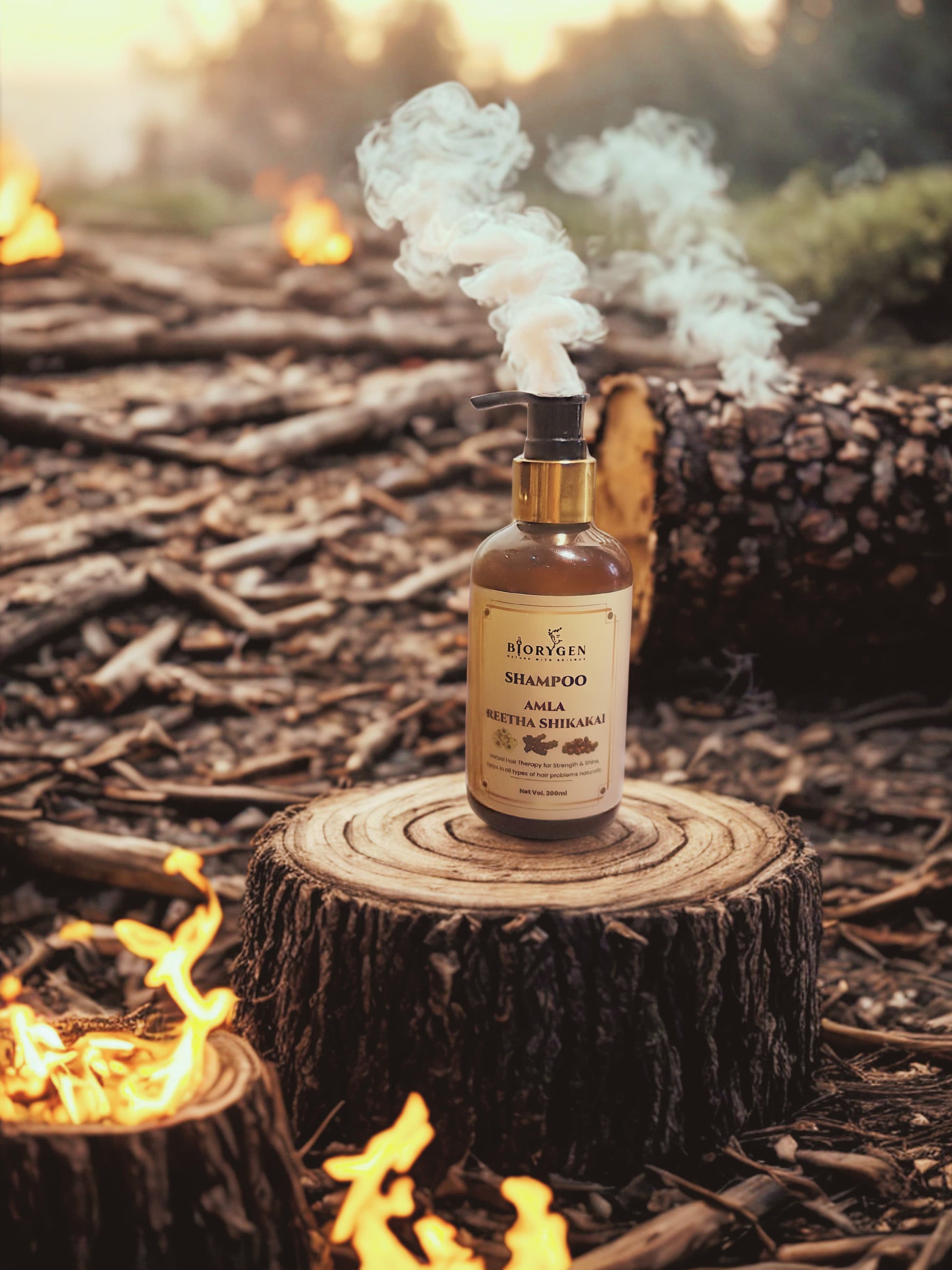 BioRyzen Herbal Hair Oil + Amla Reetha Shikakai Shampoo Combo – Natural Hair Growth & Strength Kit