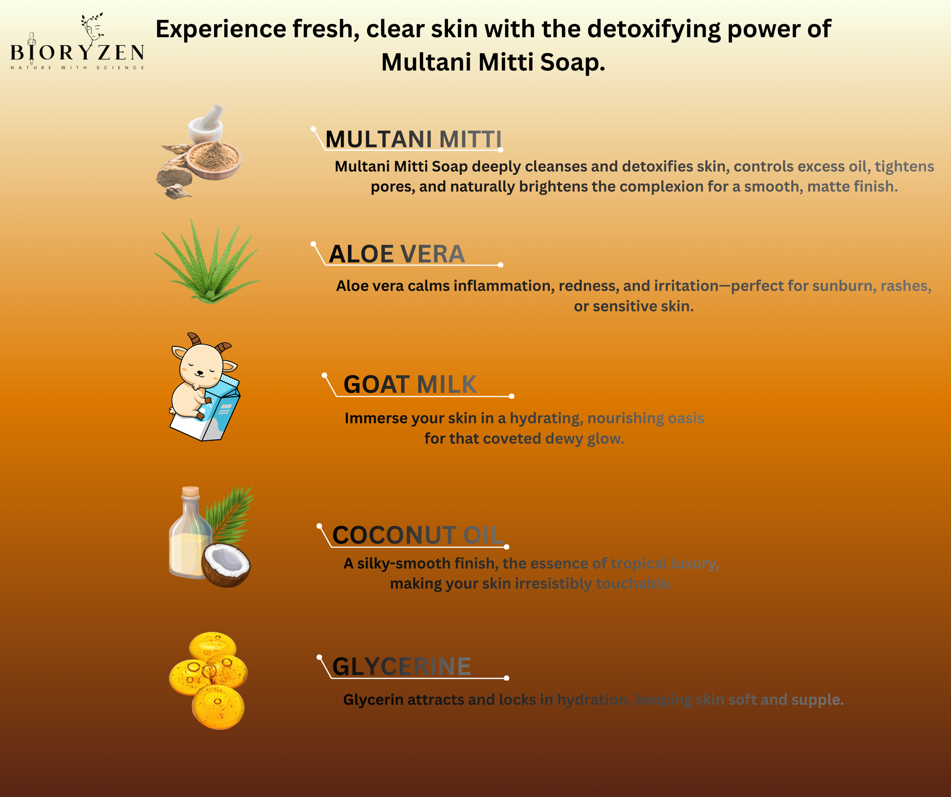 Handmade with Pure Multani Mitti, Goat Milk, Glycerine, Coconut & Olive Oils, Shea Butter, Vitamin E, Aloe Vera
