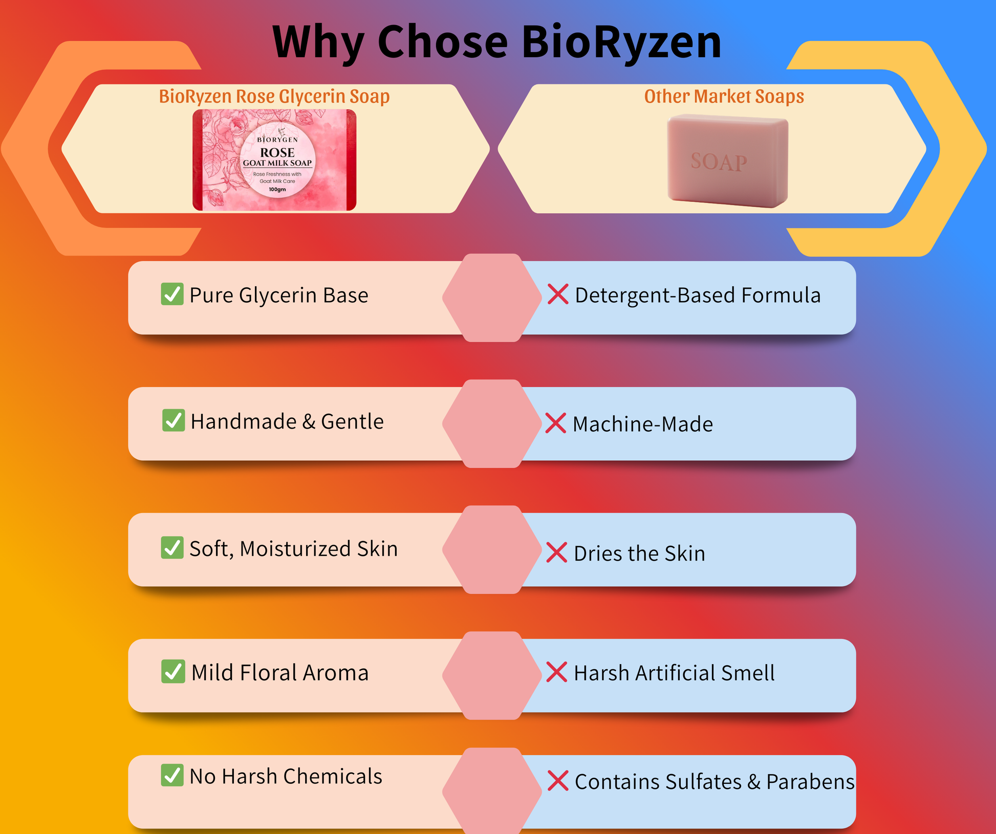 BioRyzen Rose Glycerin Handmade Soap – 100g (Combo 3+1 Free = 400gm) | Natural Moisturizing Ayurvedic Soap for Soft & Glowing Skin (With Jute Bag)