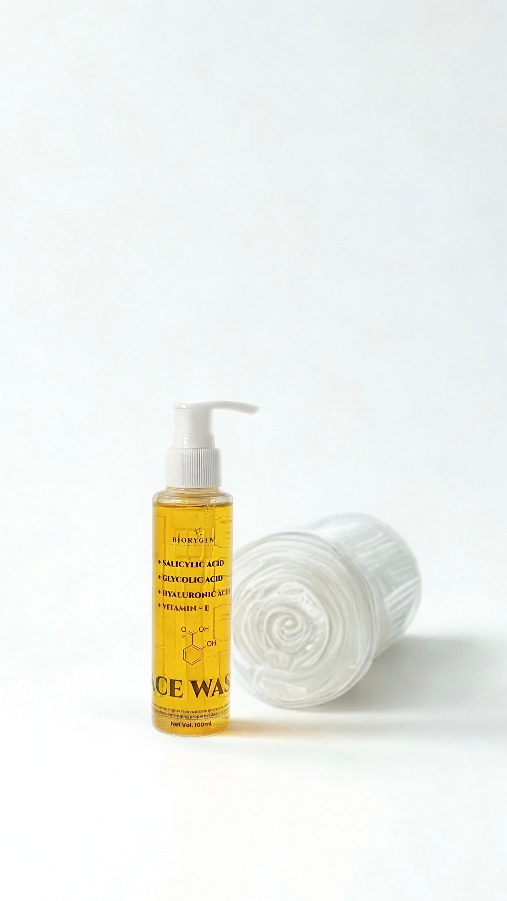 BioRyzen Salicylic Acid, Glycolic Acid, Hyaluronic Acid & Vitamin E Face Wash – 100 ml